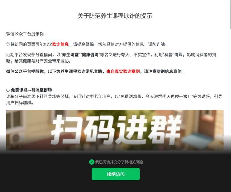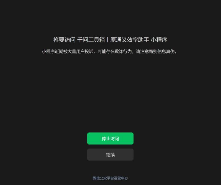 【太平洋科技快讯】2月10日消息,阿里“千问工具箱 | 通义效率助手”小程序被官方限制。用户打开小程序时会弹出警示窗口,提示其“近期被大量用户投诉,可能存在欺诈行为,请注意甄别信息真伪”。若用户选择“继续”,将跳转至“关于防范养生课程欺诈的提示”页面,需滑动页面阅读5秒并勾选“已阅读并充分了解相关风险”选项方可打开小程序。