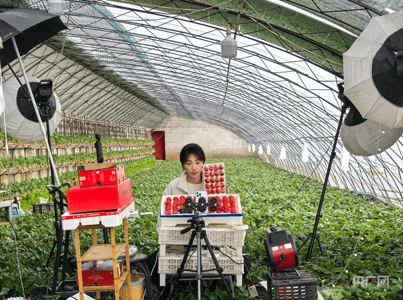 新农人陈雅鑫在大棚里直播(记者王吉星 摄)
