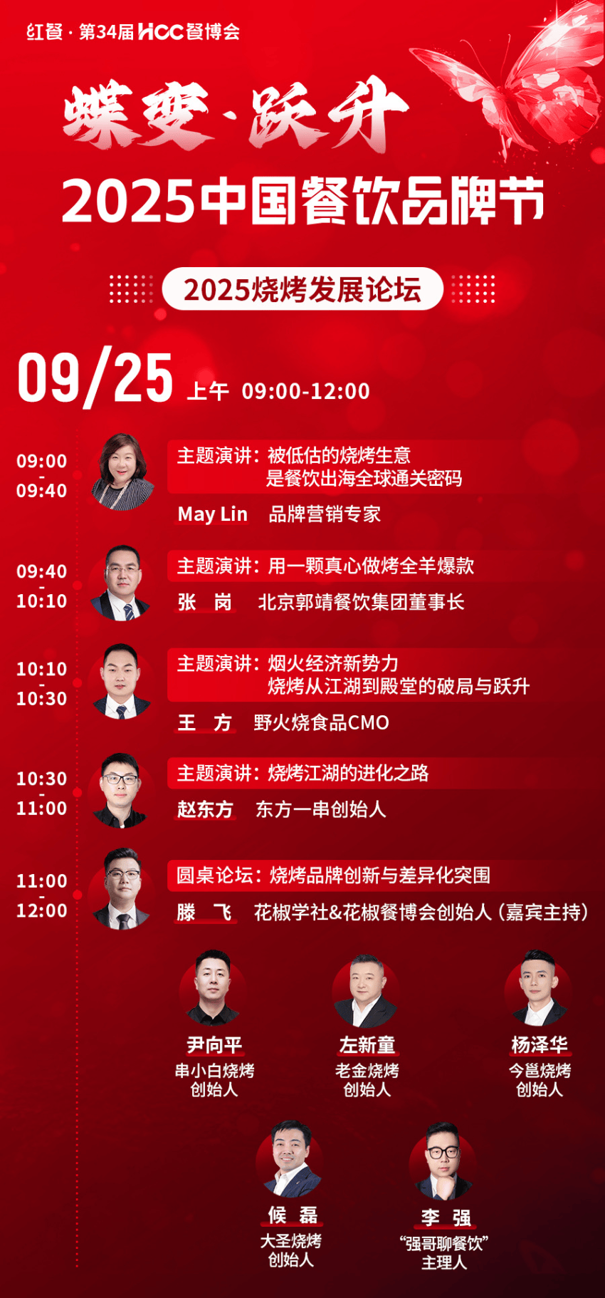 2025烧烤发展论坛聚焦烧烤品类高质量增长核心议题,涵盖产品创新升级、场景体验优化、区域扩张与品牌化路径等话题。通过大咖探讨,为行业提供品类现代化破局的实战思路。受邀嘉宾集结烧烤赛道领军力量,既有深耕区域扩张的连锁品牌创始人,也有专注品类研究与供应链服务的专家。他们将带来品类创新实践与规模化运营的落地经验。