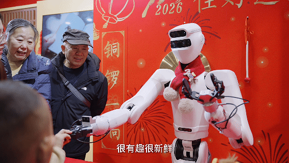 传统文化、春节庙会与AI机器人在同一公共场域中和谐共生,构成了一幅传统中国、当代中国与未来中国同框呈现的生动画面。