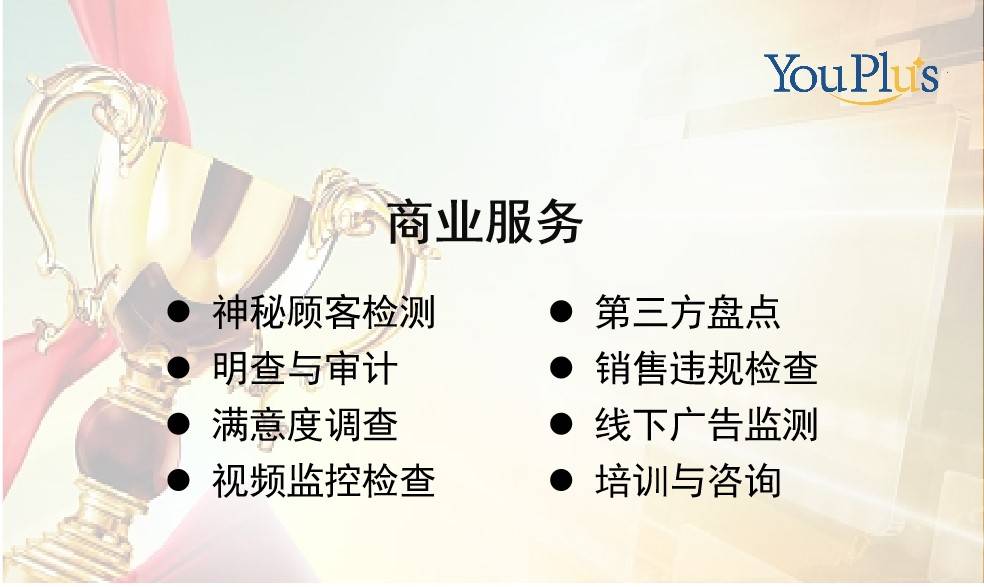 第三方调研汇总稽查数据,梳理问题并形成专项报告,明确问题类型、涉及终端/经销商及整改要求;跟踪整改落地情况,定期开展复盘稽查,优化促销执行流程,搭建长效管控机制。[优加渠道监测丨YOUPLUS] 服务行业20+,服务海内外客户1000+,自主研发平台,建立覆盖全国及海外的执行网络,擅长执行全国性及海外调研项目。