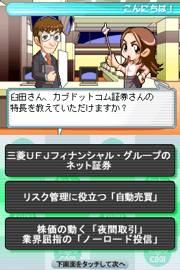 像我之前提到的那样,在我主观上没有戒烟想法的情况下,戒烟游戏无法对我起到任何作用。同样的,在不想接受教育的情况下,教育游戏也无法让我吸收任何知识。举个例子,在游玩《若林史江的 DS 股票课程》(若林史江のDS 株レッスン♪)的过程中,因为我对股市没有任何兴趣,所以游戏教授的各种基础股票知识完全没有进到我的脑子里,学到的几个专业用词也在几周内就忘了个干净。