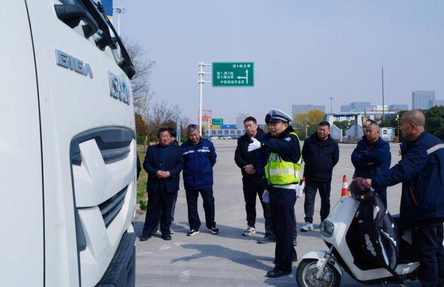 在企业场站内,民警又用一辆货车模拟路口转弯和事故现场,让大家直观感受车辆内轮差和盲区可能会带来的危害,并向大家普及交通事故预防要点和应急处置流程,叮嘱大家万一遇见事故不要慌,牢记“车靠边、人撤离、即报警”口诀,做好现场安全防护,坚决避免二次事故发生。