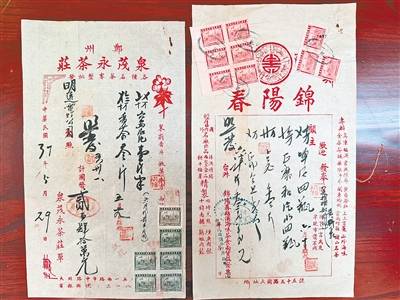 据了解,作为中国发票发展的重要转型期,民国时期发票的使用经历了由传统书契式向现代表格式的演变。在这一时期,随着印花税票、防伪印章与印刷技术的应用与成熟,传统商业礼仪与现代商品交易在这一方宣纸上悄然融合。从表示“恭敬地奉上、奉送”的“发奉”,到表示“敬请查阅、请您知晓、请您核对”的“台照”,近现代商铺对于顾客的尊敬以及对于契约精神的尊重,都在这一份份发票上得以展现。