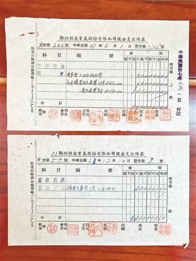 如今,翻开这一册册发票,泛黄的纸张在塑封保护下显得平整光洁。从印刷色彩到毛笔字迹,一切都安然如初,层叠之间,诉说着郑州70年来的沧海桑田。