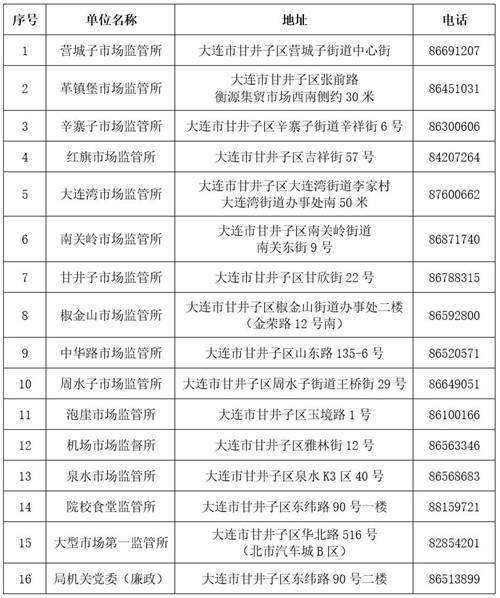 附:甘井子区市场监管局食品安全线索及廉政问题举报电话