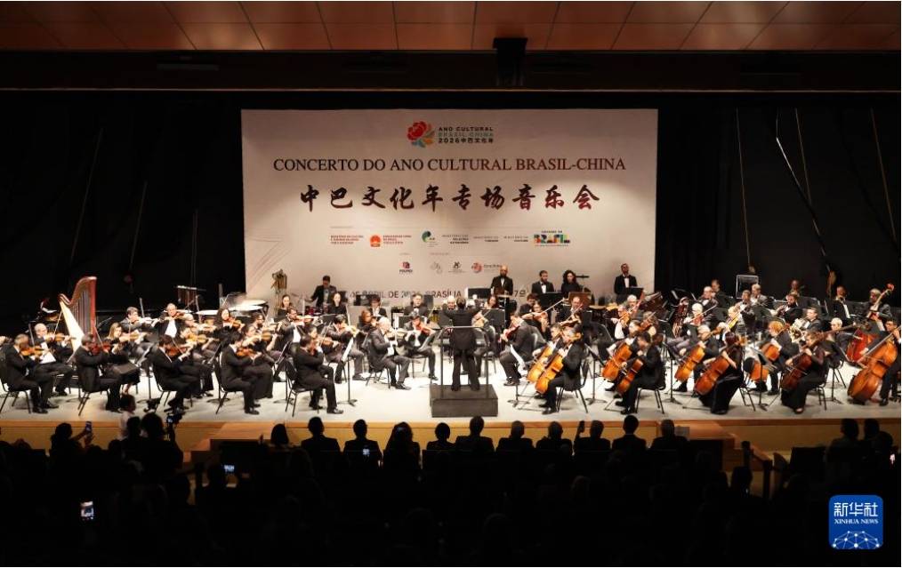4月7日晚,“中巴文化年”专场音乐会在巴西首都巴西利亚举行,中国交响乐团和巴西克劳迪奥·桑托罗国家剧院交响乐团同台演绎两国经典名曲。本次音乐会是2026“中巴文化年”重要活动之一。