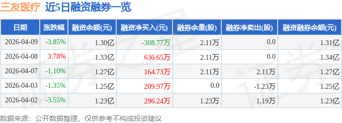 证券之星消息,截至2026年4月9日收盘,三友医疗(688085)报收于17.96元,下跌3.85%,换手率1.26%,成交量4.02万手,成交额7288.4万元。