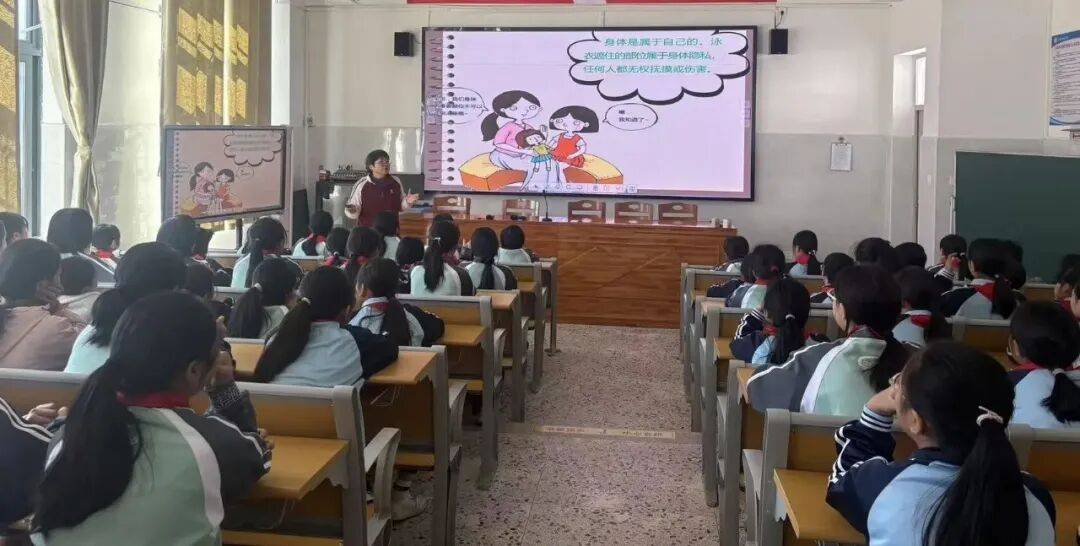 随后,吴老师结合真实案例,深入浅出地讲解了性侵害的定义、常见形式及潜在场景。 内容涵盖身体接触与非身体接触性侵害,如诱骗触摸、语言骚扰、展示淫秽内容等。 通过情景模拟和角色扮演,学生们直观地学习了在不同情境下如何勇敢拒绝、有效求助,并掌握了“不轻易相信陌生人、警惕熟人异常行为、避免单独前往偏僻场所”等实用防范措施。