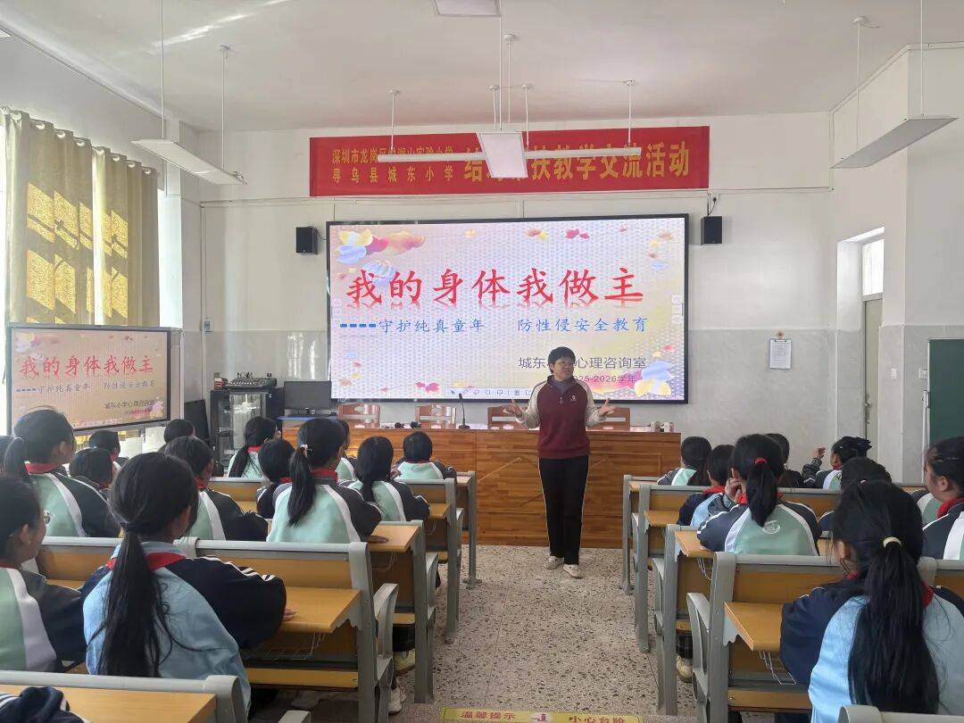 为切实加强女生青春期安全教育,提高学生自我保护意识与能力,2025年11月24日,由寻乌县城东小学心理辅导员吴敏老师向高年级女生举办了“我的身体我做主”防性侵安全教育专题讲座。此次活动旨在帮助女孩子们建立清晰的身体界限,掌握防范性侵害的知识与技能,为孩子们的青春成长保驾护航。