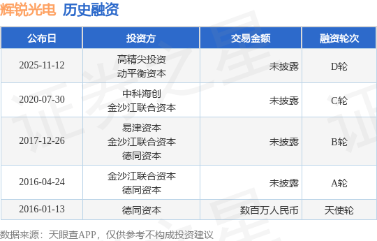 证券之星消息,根据天眼查APP于11月12日公布的信息整理,南京辉锐光电科技有限公司D轮融资,融资额未披露,参与投资的机构包括高精尖投资,动平衡资本。