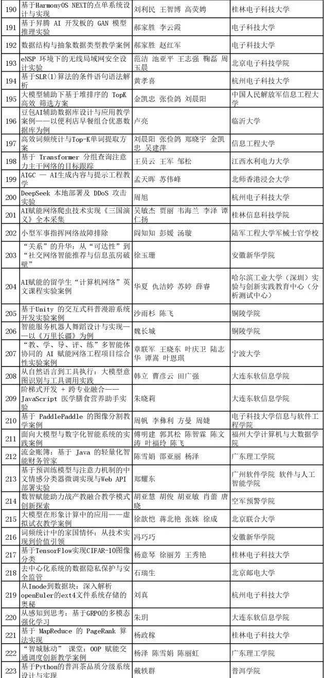 计算机类教学和实验案例获奖名单