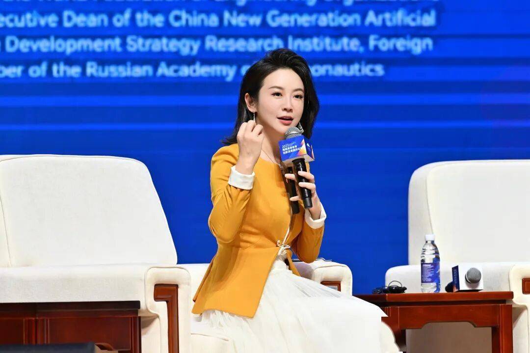 她巧妙借用自己名字的谐音,道出核心观点:“AI能让我们跑得更快;而中华民族拼音里的爱ai,决定我们奔跑的方向。”