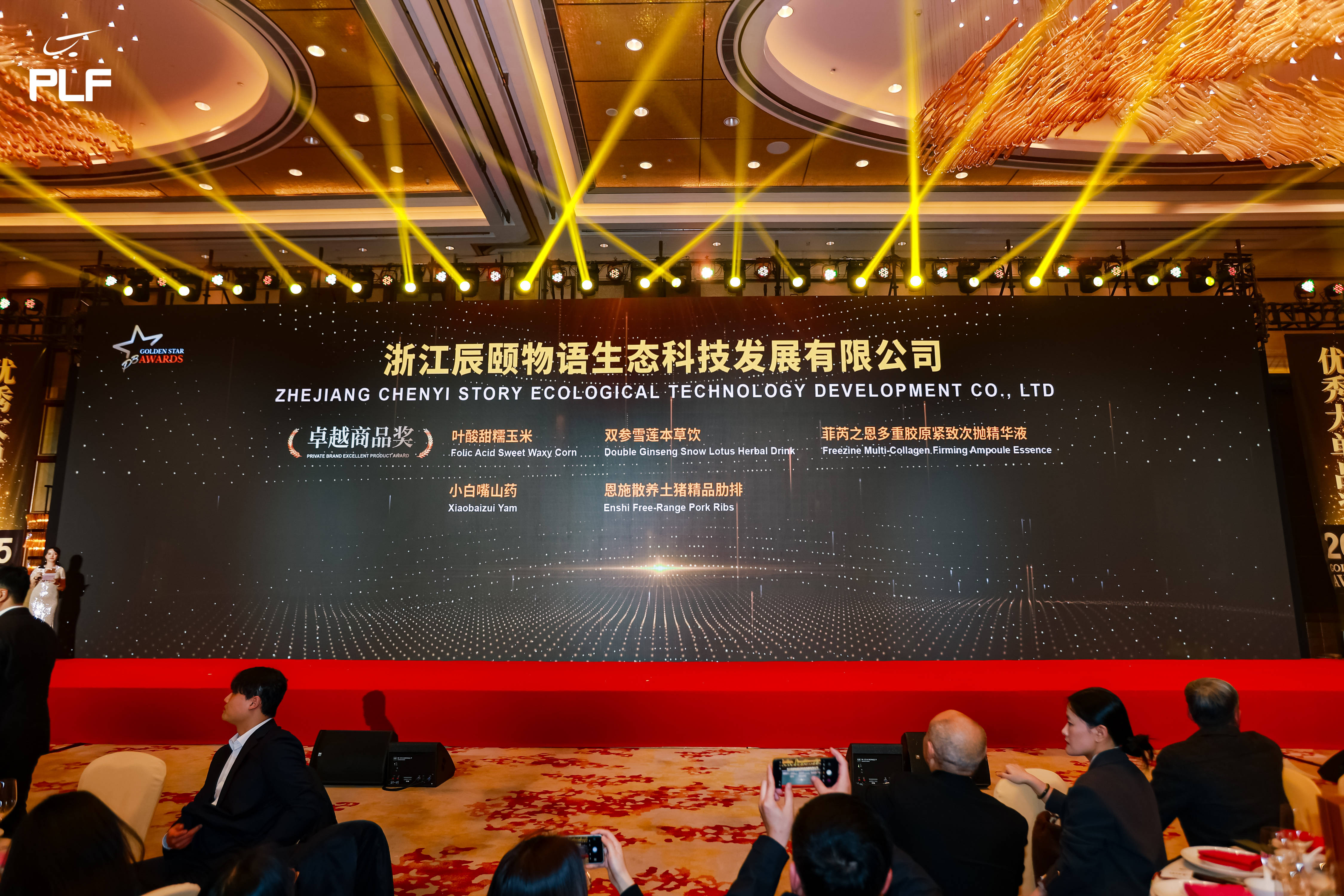 颁奖典礼上,浙江辰颐物语生态科技发展有限公司(以下简称:辰颐物语)旗下产品:叶酸甜糯玉米、小白嘴山药、双参雪莲本草饮、恩施散养土猪精品肋排、菲芮之恩多重胶原紧致次抛精华液,凭借卓越的产品品质、优异的销售业绩及市场认可度,捧回五座“自有品牌金星奖”卓越商品奖杯。