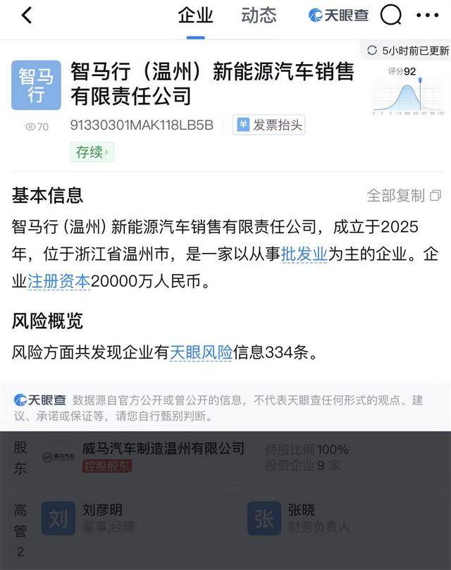 威马汽车又迎来新动作。据天眼查APP,智马行(温州)新能源汽车销售有限责任公司成立,注册资本2亿元,经营范围包括新能源汽车整车销售、新能源汽车电附件销售、新能源汽车换电设施销售、汽车销售等。这是威马汽车破产后首次以独立法人主体形式布局渠道端,看起来也更像是威马汽车重整的实质性进展。