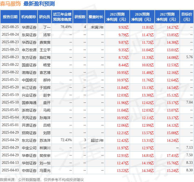 中国银河证券股份有限公司郝帅,艾菲拉·迪力木拉提近期对森马服饰进行研究并发布了研究报告《短期利润承压,渠道持续优化》,给予森马服饰增持评级。