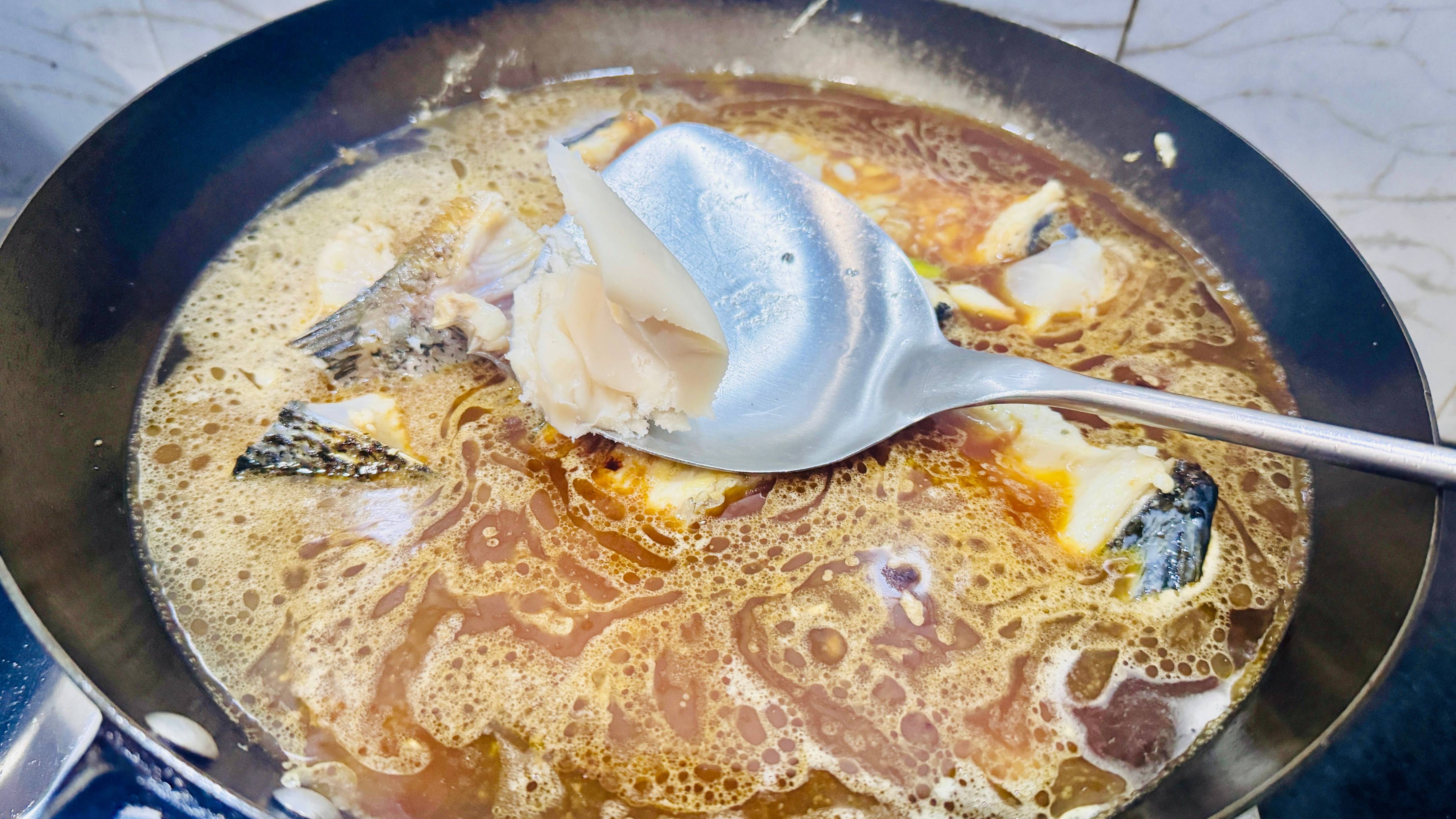 加入适量清水,没过鱼肉即可,妈妈说烧鱼的时候一定要加猪油,小时候最喜欢吃鱼冻了,想来应该是加了猪油之后鱼冻会更香的吧。
