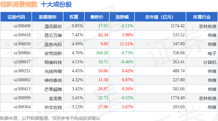 证券之星消息,11月18日,创新消费(970041)指数报收于2489.36点,涨1.63%,成交370.3亿元,换手率6.0%。当日该指数成份股中,上涨的有31家,值得买以14.4%的涨幅领涨,下跌的有19家,西域旅游以4.34%的跌幅领跌。