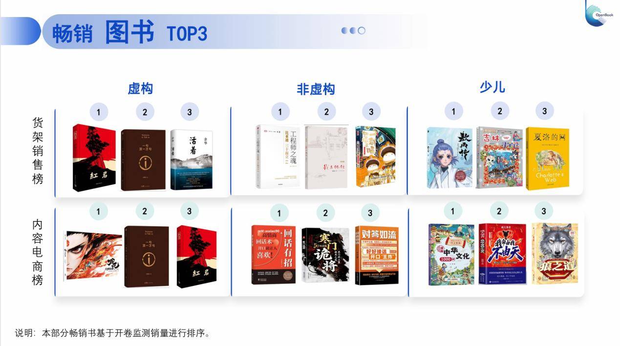 非虚构和少儿类货架销售榜和内容电商榜前3名完全不同。《工程师之魂:比亚迪三十而立(1994-2024)》位居非虚构类货架销售榜首位,《回话有招:高情商回话术,开口就让人喜欢》位居非虚构类内容电商榜首位。《敖丙传(壹)》位居少儿类货架销售榜首位、《漫画中华文化1000问》位居少儿类内容电商榜首位。