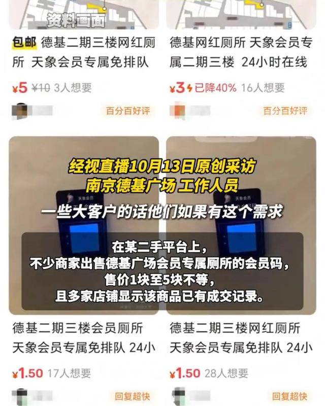 近日,有网友发现南京德基广场内开辟了会员专属厕所。该网友发布的照片显示,该厕所进出通道设有智能玻璃门禁系统,玻璃门上注明“天象/黑卡会员专属”,门侧配有扫码设备。10月13日,德基广场一名工作人员表示,会员专属厕所仅对德基天象会员及以上等级会员开放,会员需扫描专属会员码才能进入。同时,工作人员介绍,要达到德基广场天象会员的门槛,消费者需要一个自然年内连续180天消费满10万元,或者一个自然年内消费满20万元。值得注意的是,在某二手平台上,不少商家出售德基广场会员专属厕所的会员码,售价1块至5块不等,且多家店铺显示该商品已有成交记录。(经视直播)