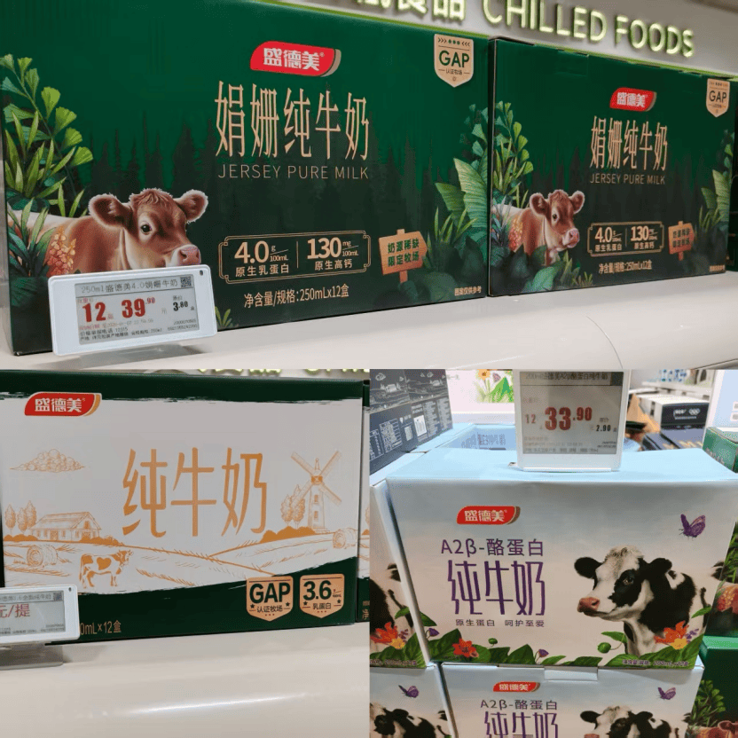 以乳制品为例,长申超市此前仅推出一款与君乐宝合作的低温鲜牛奶,如今则新增多款常温纯牛奶单品,包括3.6g蛋白全脂纯牛奶、娟姗纯牛奶以及A2酪蛋白纯牛奶等,满足不同消费群体的细分需求。