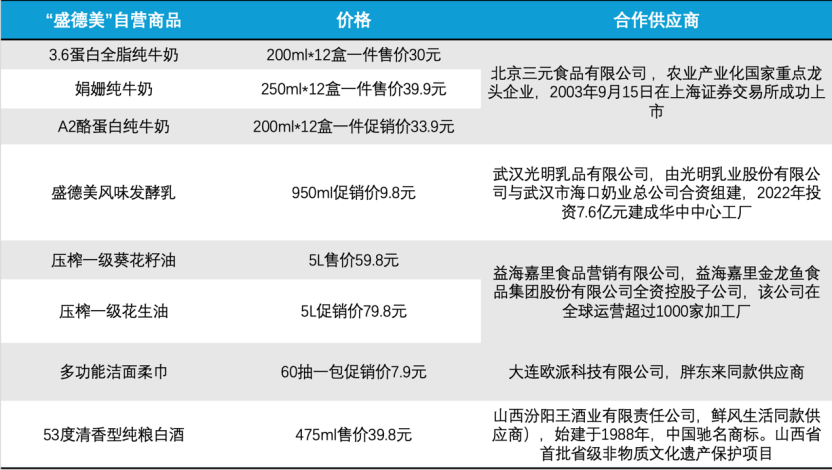 图:盛德美部分自营商品及其合作供应商