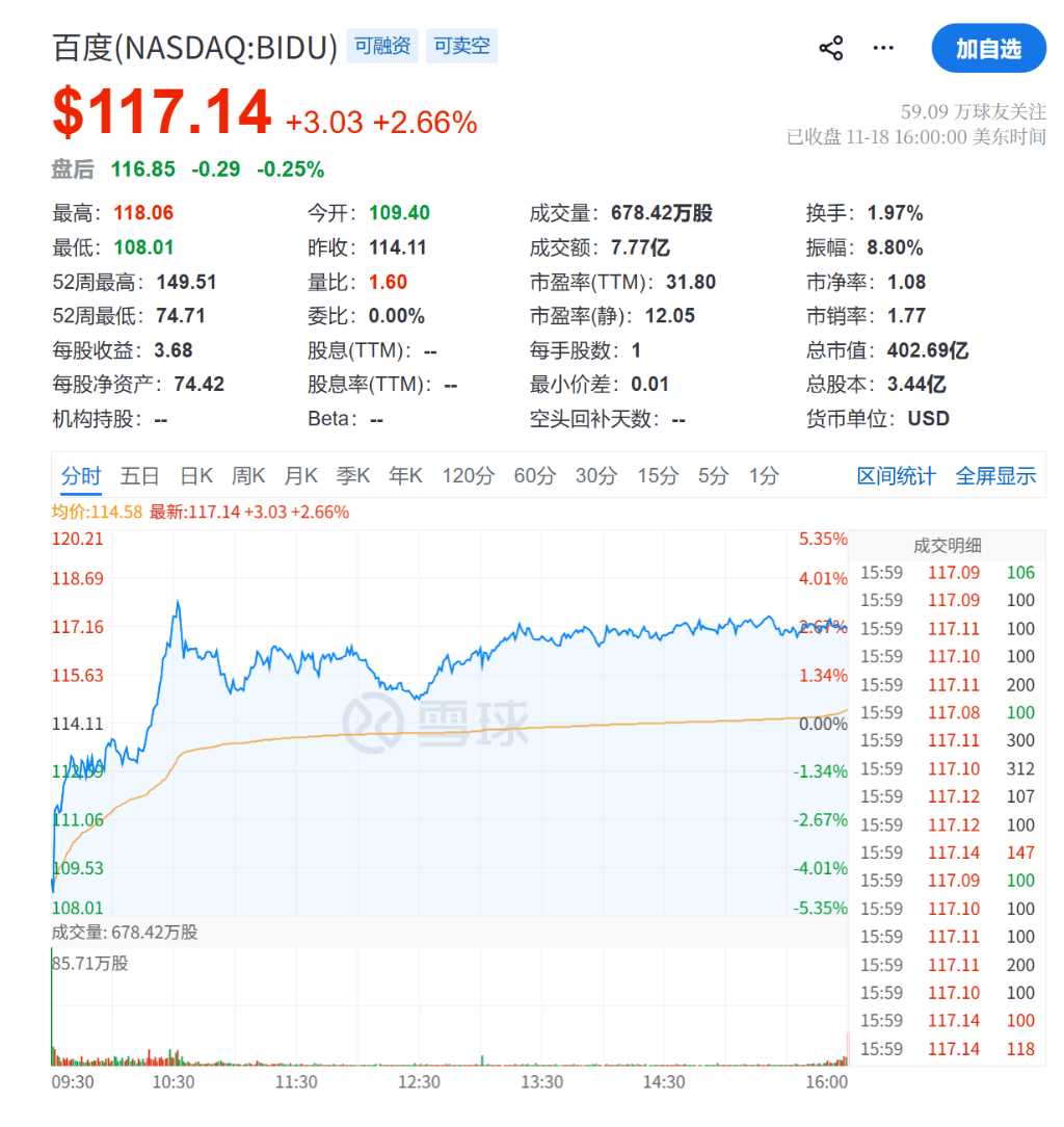 花旗将百度目标价从167元上调至181美元,上调幅度9%,维持买入评级。上调理由包括云业务和无人驾驶网约车业务的积极发展。分析师认为,随着百度改善运营指标披露和AI收入透明度,叠加持续投资升级文心5.0模型与AI代理,投资者对其运营前景和股价表现将更有信心。