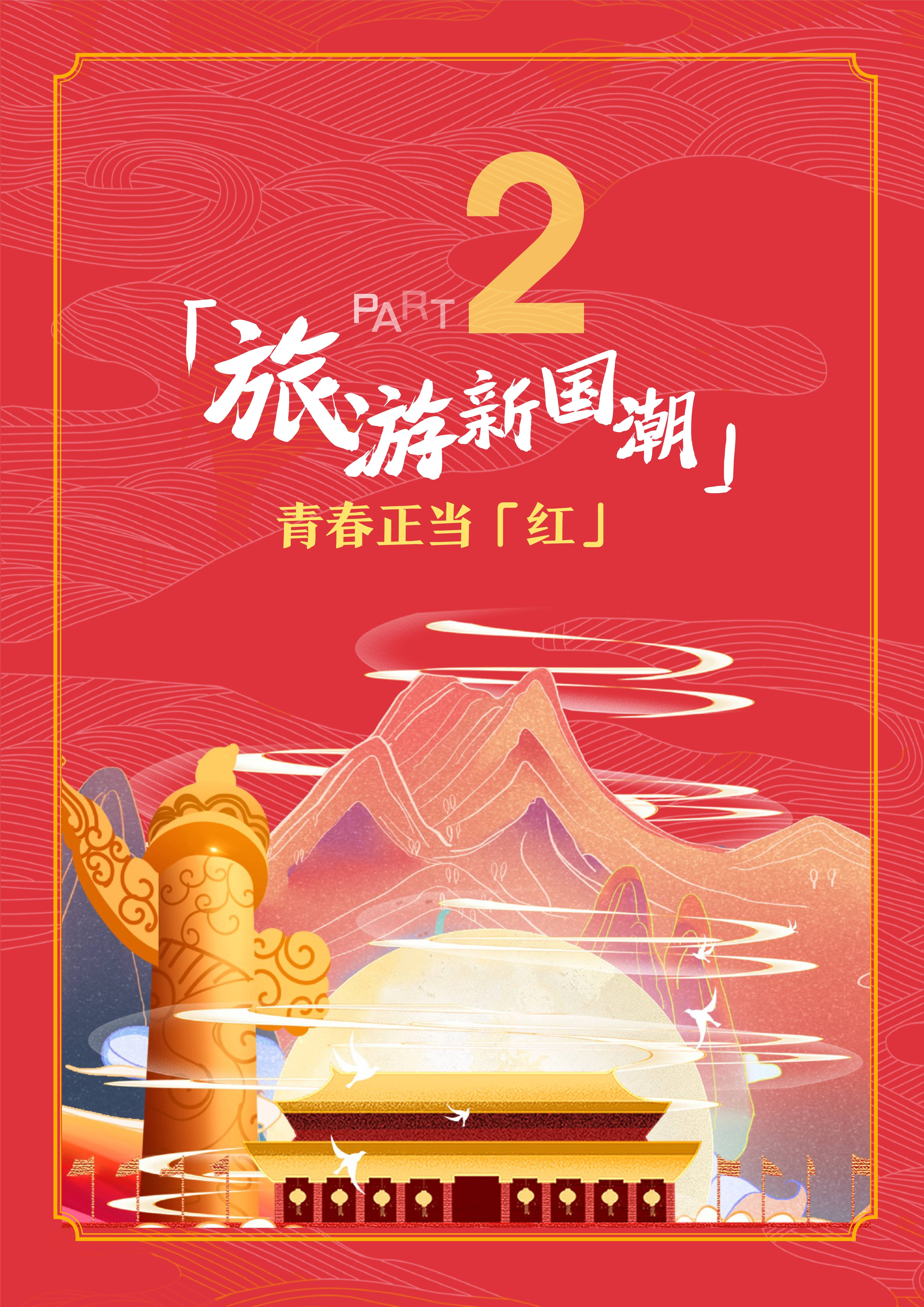 “新国潮”文化在旅游领域兴起,年轻人对红色旅游、博物馆和文创产品表现出浓厚兴趣。红色旅游成为新潮流,2021年端午节期间,87.9%的游客体验了红色旅游,且95后超越80后成为红色旅游的主要参与者。年轻人喜爱的红色旅游目的地包括上海、西安、延安等城市,以及井冈山、嘉兴南湖等景区。