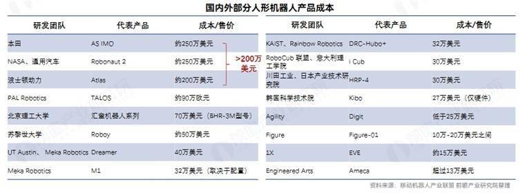 成本方面,人形机器人制造成本居高不下。目前,本田、NASA与通用汽车、波士顿动力等人形机器人产品成本或售价均超过200万美元,其他企业产品成本或售价也相对较高。马斯克认为,人形机器人成本至少要控制在2万至3万美元之间才能实现量产。人形机器人为什么有些贵?高工机器人研究总监蔡炳贞一针见血:“大脑、小脑技术以及关节模组等硬件都未标准化,各个零部件主要由各机器人厂家设计定制,导致定制成本居高不下。”