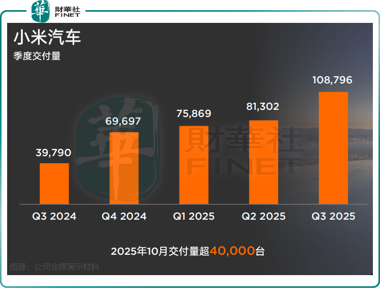 第三季度,小米汽车交付量显著提速,共交付10.88万辆,同比增长173.4%,环比增长33.8%。10月单月交付量更是突破4万辆。小米集团合伙人、总裁卢伟冰在业绩会上透露,预计本周内将完成全年35万辆的交付目标。
