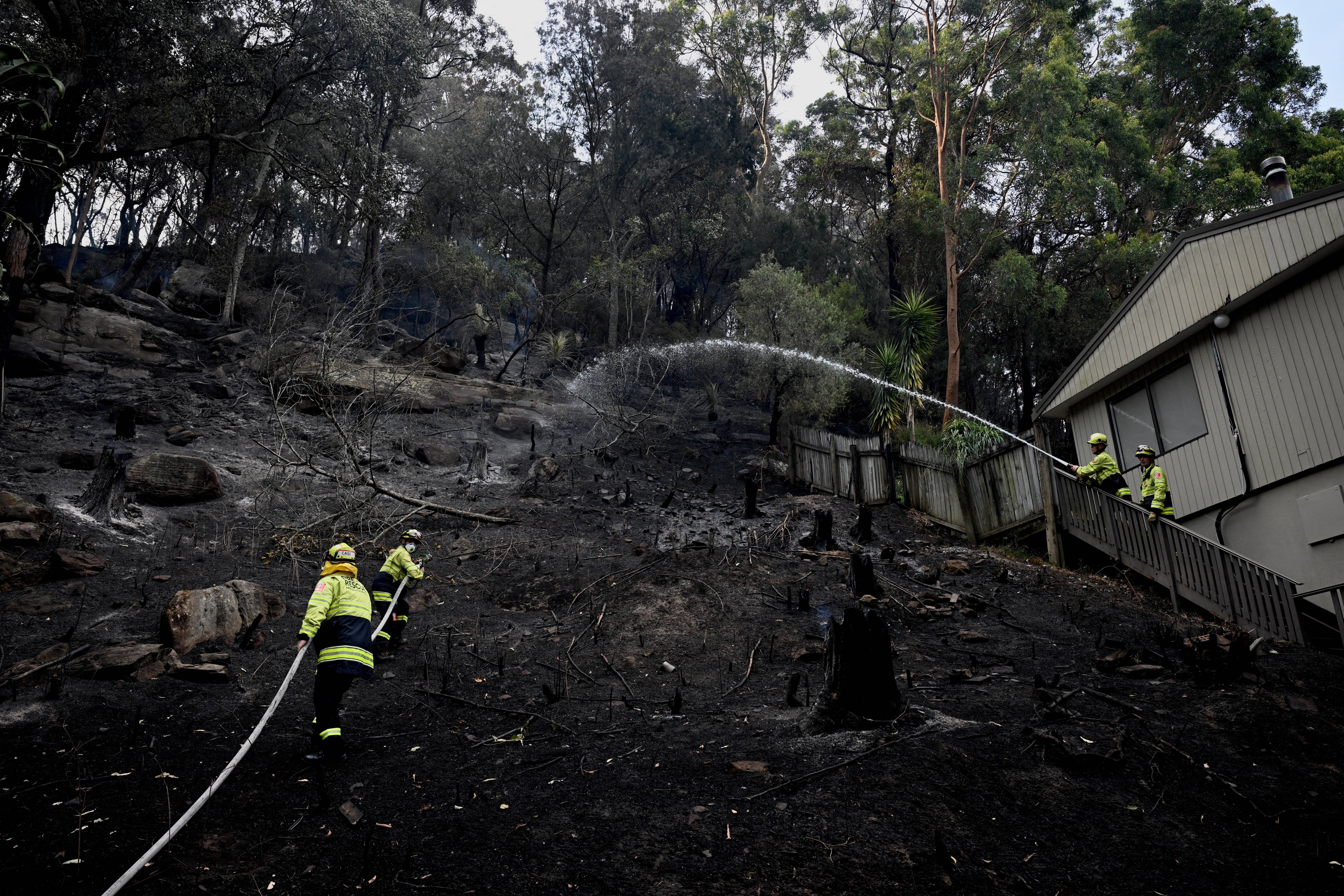 12月6日,在澳大利亚新南威尔士州,消防员在一处受灾点进行灭火作业。 新华社/路透
