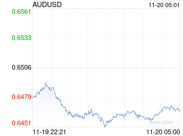 新浪外汇消息2025年11月20日,截至05时00分,外汇市场上澳元兑美元汇率跌破1澳元兑换0.6465美元。跌幅为-0.6302%
