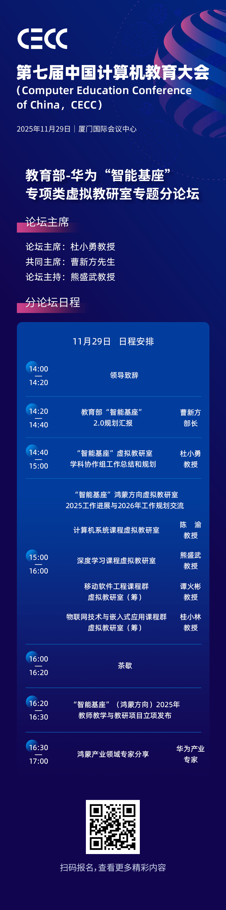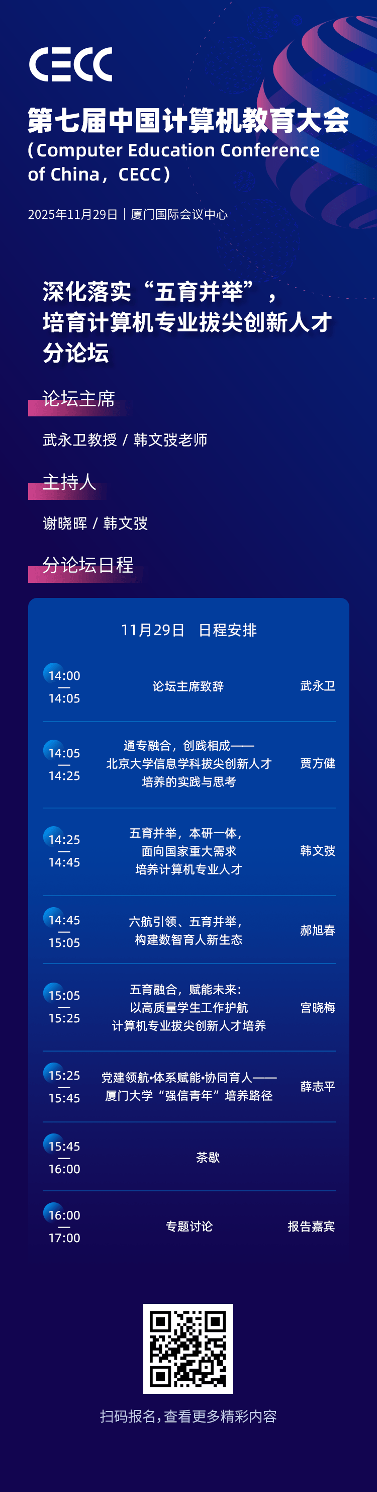 11月28日,“第七届中国计算机教育大会(CECC)”将在厦门国际会议中心盛大召开。