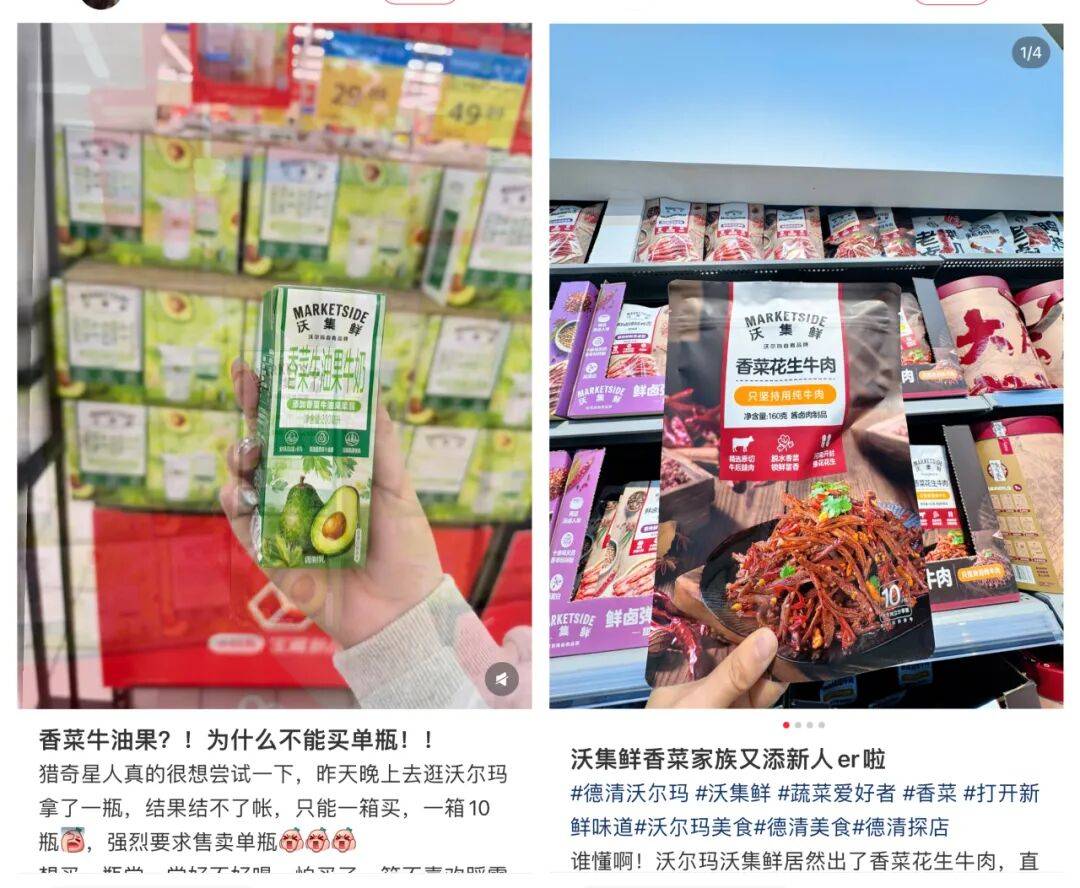 “沃集鲜”推出的一系列香菜、苦瓜商品就源自沃尔玛团队小红书上大量的中性评论里的发现,“大量消费者喜欢这些创新,觉得每天要有一些小确幸、开心。”