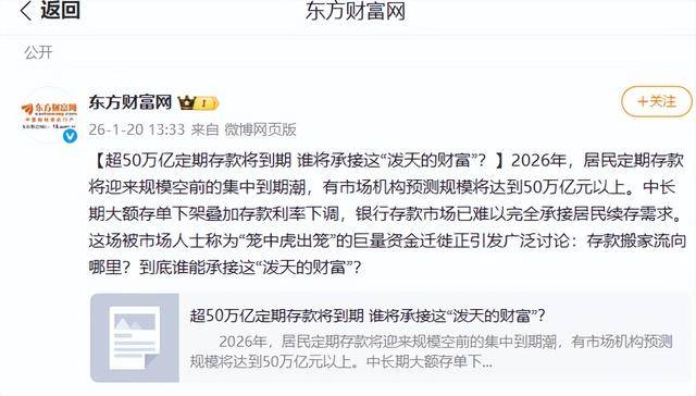对于整个市场来说,这次存款到期也不是"洗牌",而是"优化"。资金会慢慢流向更优质、更稳健的渠道,银行也会被迫提升服务质量,这其实是金融市场成熟的表现。咱们普通人不用被媒体的焦虑情绪裹挟,根据自己的实际情况做选择,比什么都重要。
