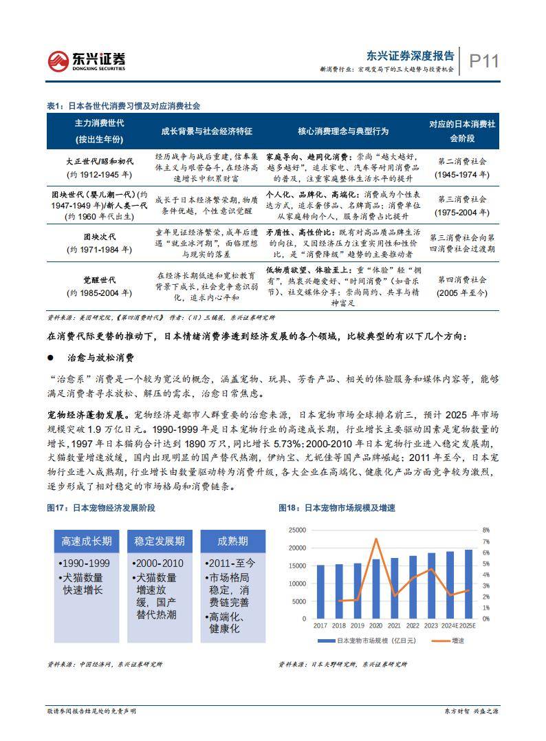 社会主流消费人群代际更替推动主流消费倾向快速转变。日本从家庭导向向个性化、精神满足转变,经历了团块世代、新人类一代、觉醒世代的更替。伴随经济低增长,90年代日本“消费降级”趋势明显,理性、质价比和体验型消费逐步成为主流。