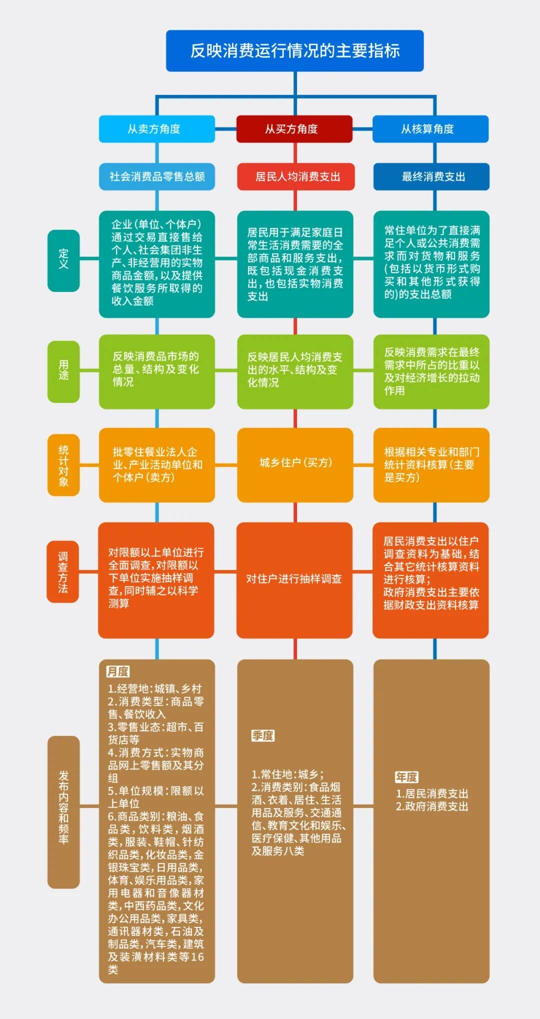 这些指标有着不同的定位作用和调查方式,从不同角度观测和反映消费发展情况。