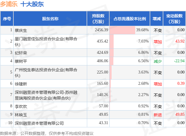 根据多浦乐2025年三季报公布的十大股东详情如下: