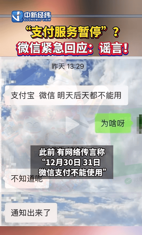 近日,在一些社交平台上, “12月30日、31日支付宝、微信支付不能使用”的消息流传。