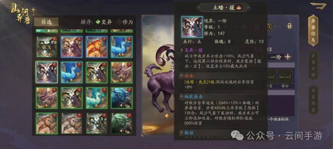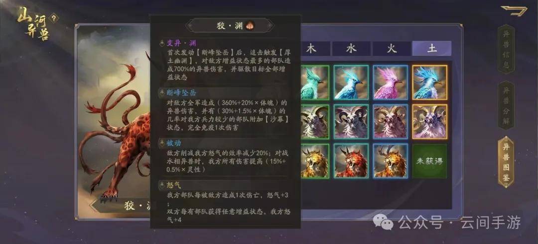 大家好,欢迎来到【云间手游】,本期小编为大家带来的是霸业游戏中土系异兽的解析,感兴趣的朋友就和小编一起看下去吧!