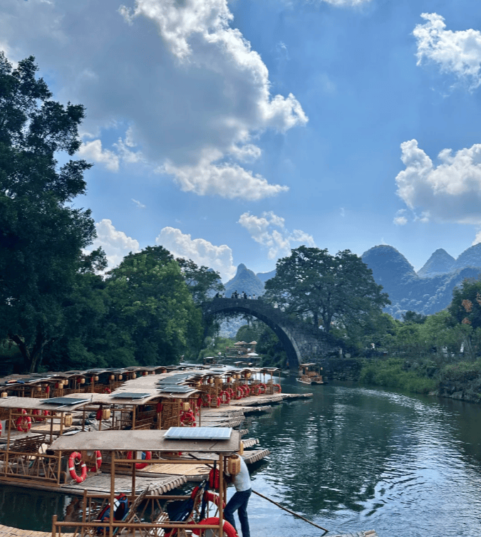 遇龙河的人工竹筏漂流太有感觉了,水流平缓,两岸青山、田园风光像画卷一样,竹筏过坝时还有点小刺激。坐车游览十里画廊,一路风景美不胜收。晚上当然要留给阳朔西街,这里热闹非凡,各种酒吧、小店、美食,泡个吧感受一下中西文化交融的独特氛围,是桂林旅游中很特别的体验。