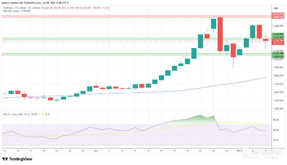 由于交易员逢低买入,铂金从日低反弹。从技术面来看,铂金需要回落至2265美元上方,才有机会在短期内获得可持续的上行动能。