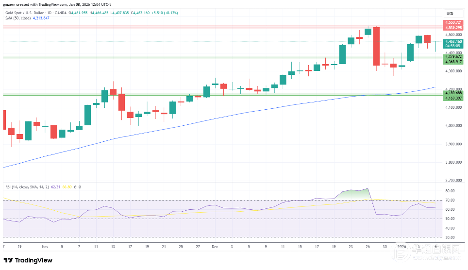 【华通白银网1月9日】•金价从盘中低点反弹,回升至4450美元上方。