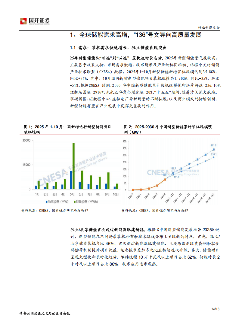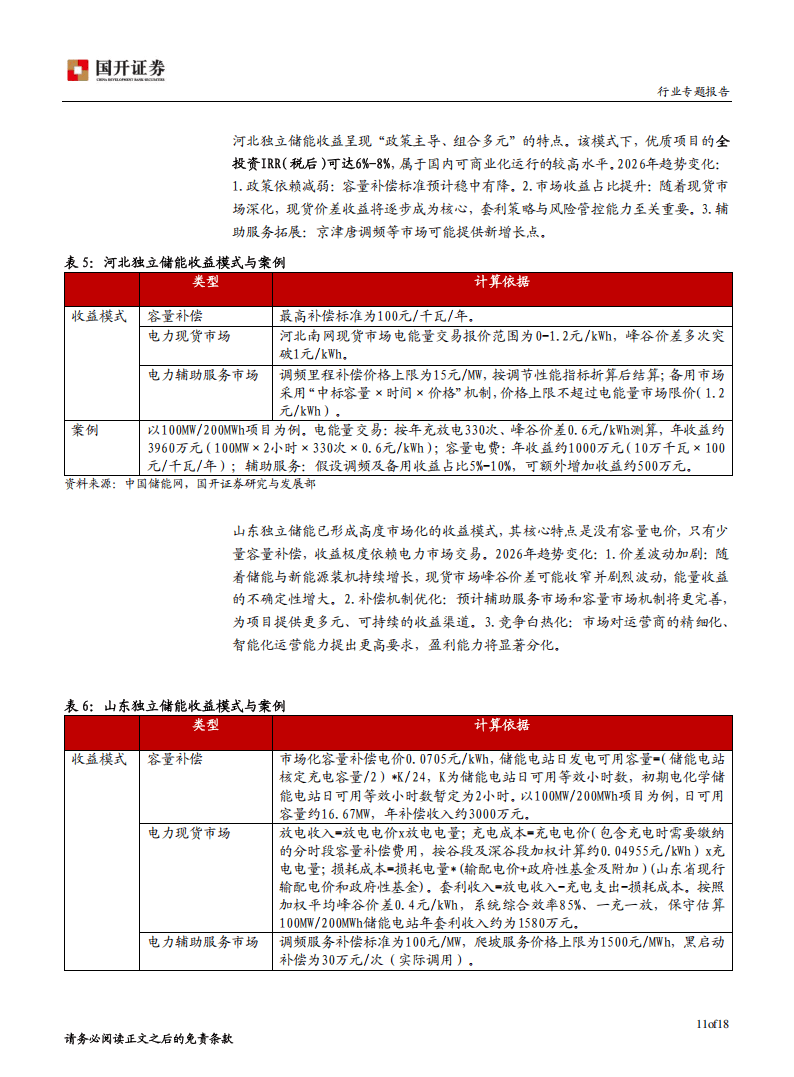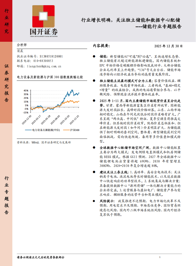 今天分享的是:储能行业专题报告:行业增长明确,关注独立储能和数据中心配储