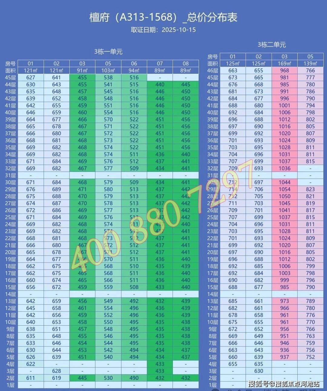 折后均价公布,3栋1单元均价4.98万,3栋2单元均价5.34万,折后均总价在412-944万!