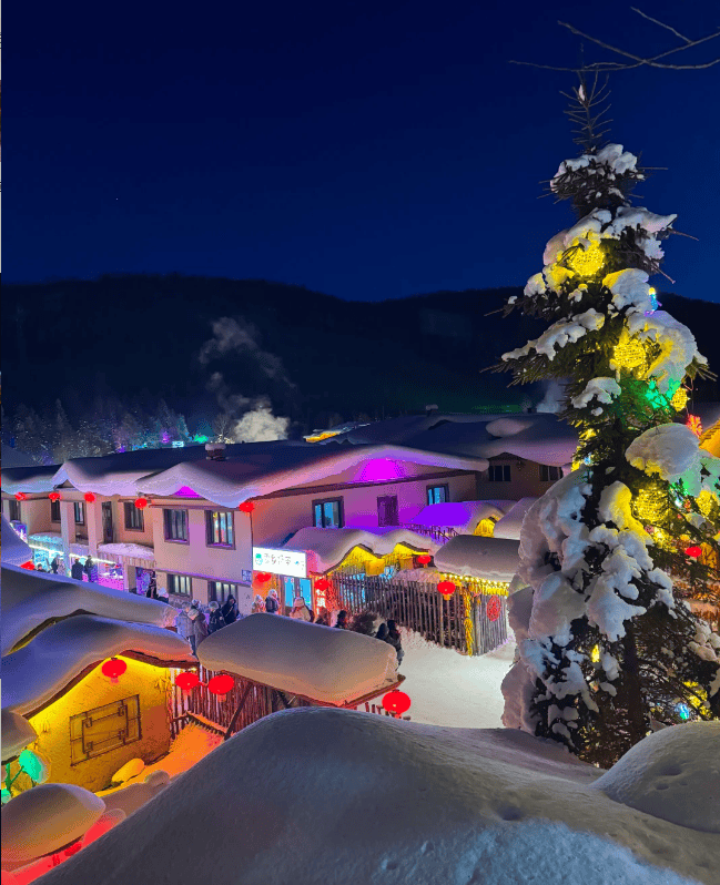 前往雪乡的沿途风光就像一幅徐徐展开的冰雪画卷。当大巴车驶入双峰林场,那片被厚厚积雪覆盖的村落出现在眼前时,全车人都发出了赞叹。我在雪韵大街上慢慢走着,摸摸路边雪墙上可爱的雪雕,尝尝冻得硬邦邦的冰糖葫芦。傍晚登上栈道,看夕阳的余晖为雪屋顶镀上金色,夜晚的雪乡在霓虹点缀下,则变得梦幻迷离。