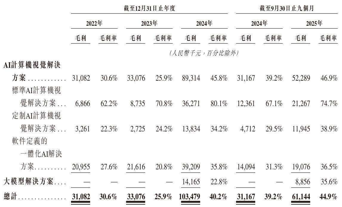 值得称道的是,极视角的毛利在2024年实现翻倍增长,由3307.6万元飙升至1.04亿元,毛利率也显著提升14.3个百分点至40.2%;2025年前三季度该公司的毛利亦同比增长96.2%至6114.4万元,毛利率进一步增至44.9%。