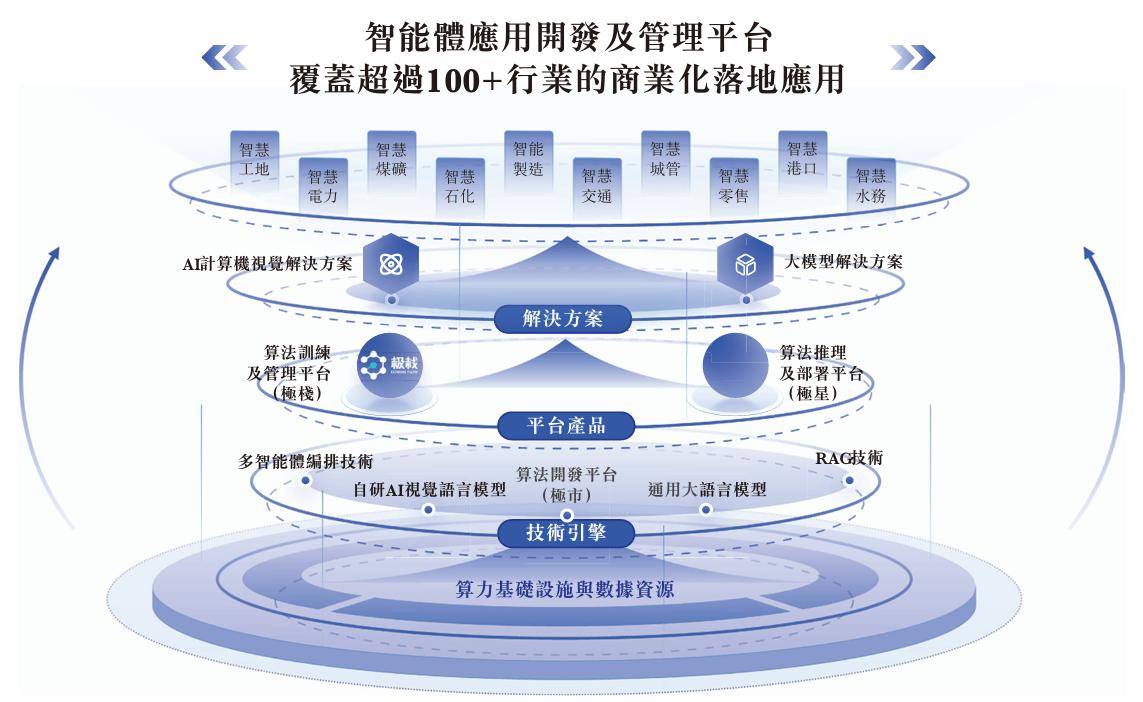 据招股书介绍,极视角的AI视觉语言模型构成了开发AI解决方案的核心基础设施;开放式算法开发平台“极市”为开发者提供在线编程工具、大模型API、训练任务管理、自动测试、各种芯片硬件兼容性、算法工程等平台技术工程支持。
