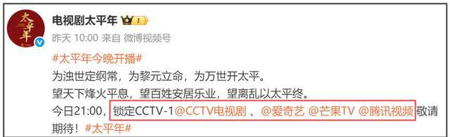 《太平年》开播之前就被多个平台买股,该剧不仅在央视一台上星播出,还分别在鹅厂、桃厂和芒果三个网播平台上线。遗憾的是,开播当日,各个播放渠道收获的成绩都十分惨淡。