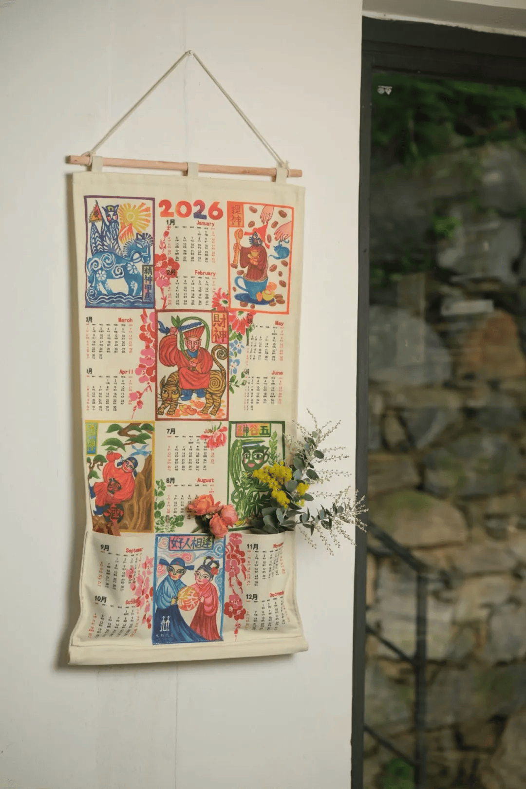 它既是挂历,又有迎财神的寓意,还可以当装饰,挂在门口当个收纳袋。云南白族传统民间木刻版画,水彩印染,帆布收纳,五神祈福,年味拉满,超适合送礼